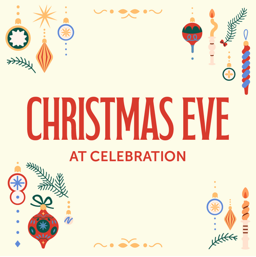 You can look forward to a time of celebration and worship as we gather to reflect on the birth of our Savior Jesus Christ. Please invite your friends, family, and older children to experience Christmas Eve at Celebration! Christmas Eve services are typically around an hour in length.